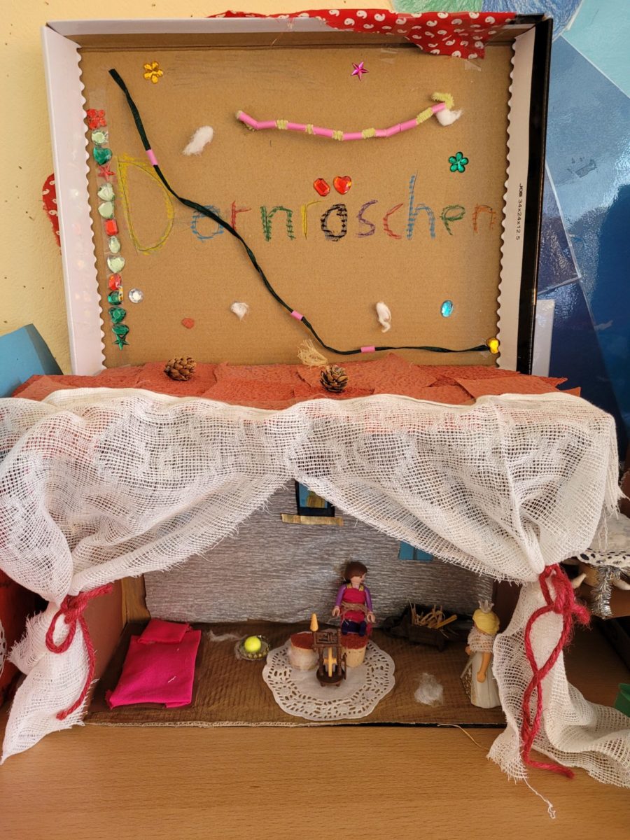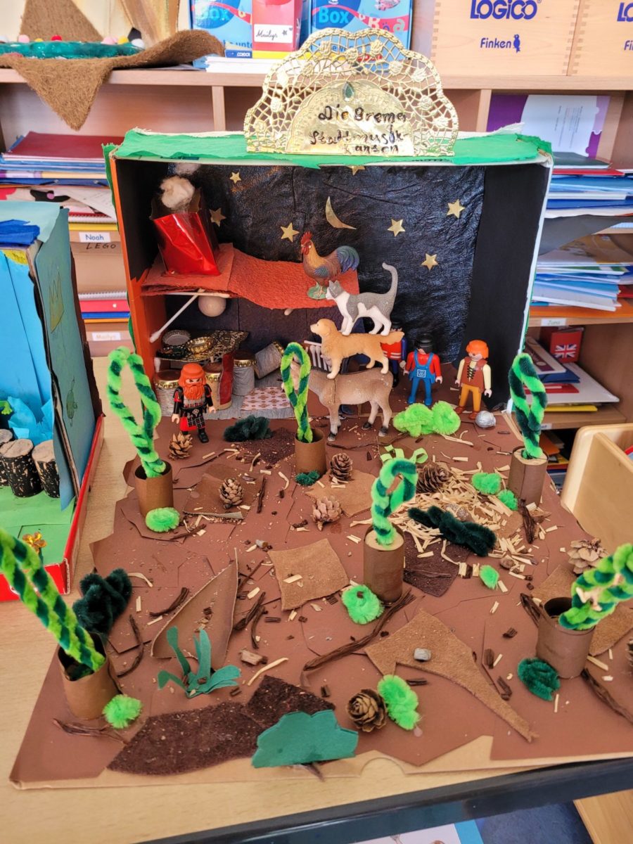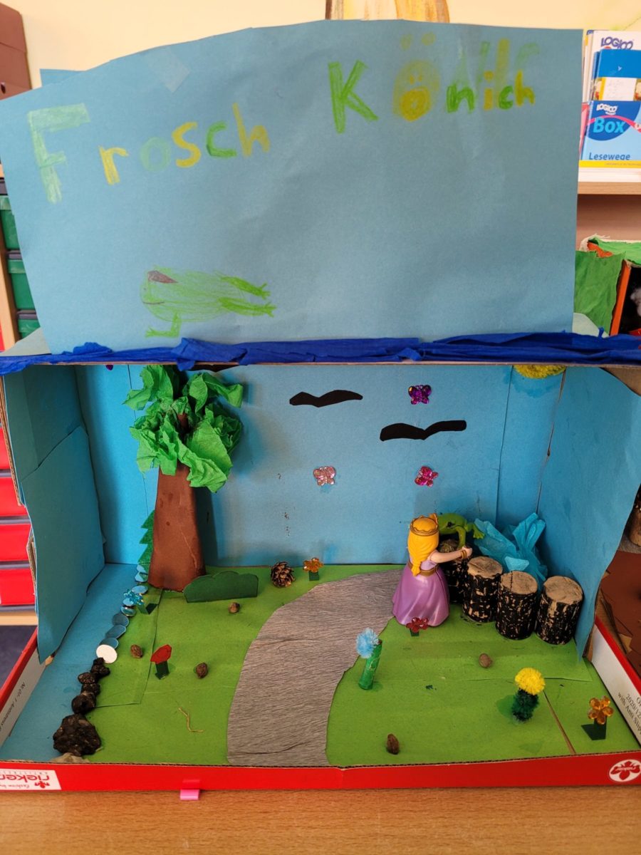 Die Drachen der Klasse 3b kreierten in Kleingruppen im Kunstunterricht besonders schöne, kreative Märchenschaukästen, die sie mit viel Hingabe und Enthusiasmus bauten.