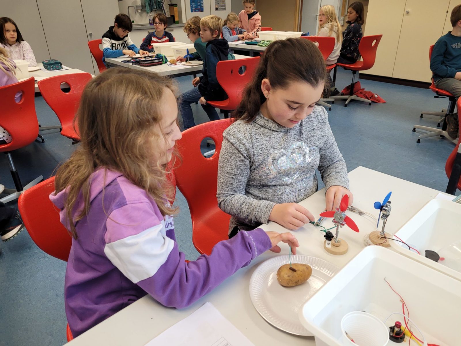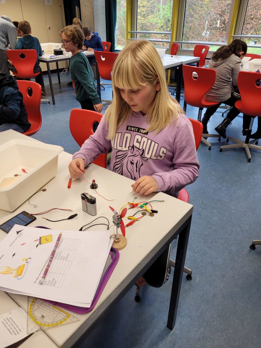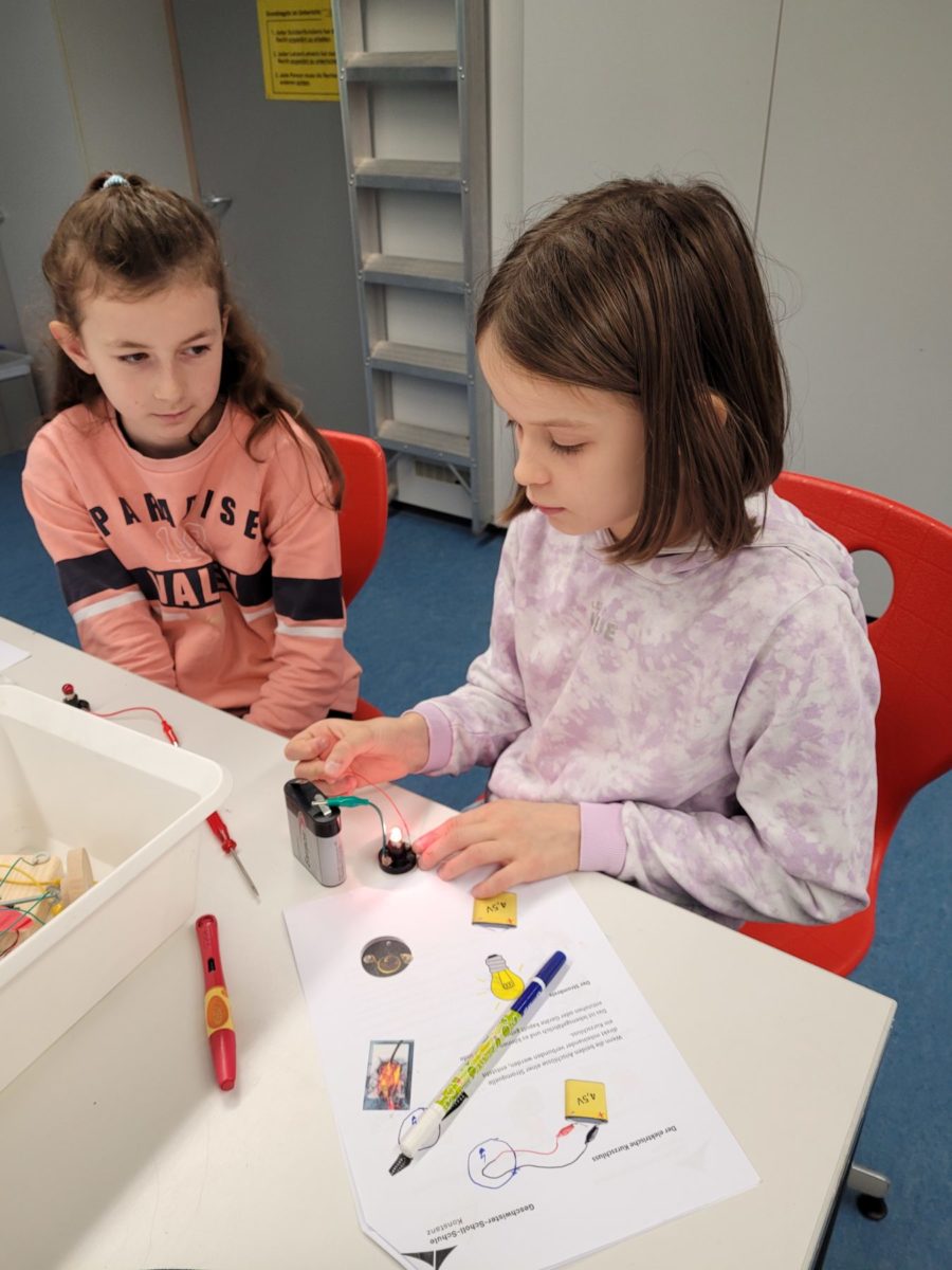 Die Füchse, Erdmännchen und Eulen stellten im Physiksaal der GSS Stromkreise her, experimentierten mit Kartoffeln, Batterien und Drähten und tauchten somit langsam in die faszinierende Welt der Physik ein.