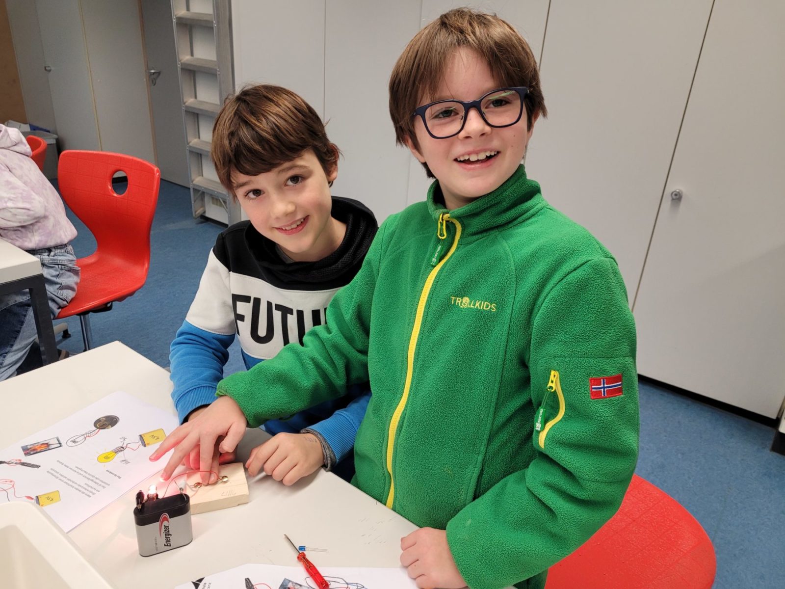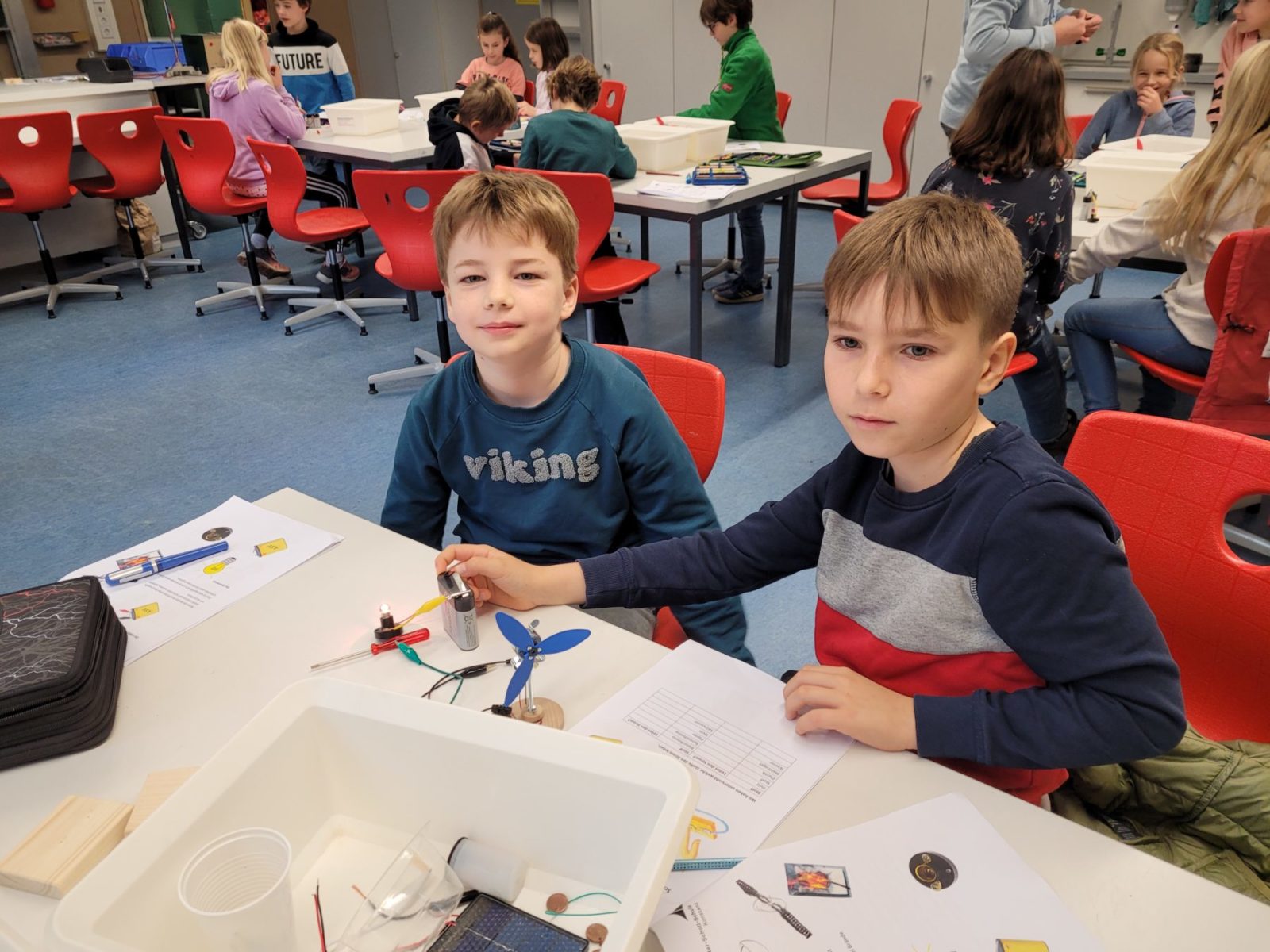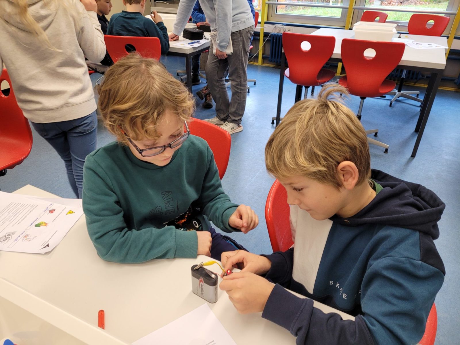 Die Füchse, Erdmännchen und Eulen stellten im Physiksaal der GSS Stromkreise her, experimentierten mit Kartoffeln, Batterien und Drähten und tauchten somit langsam in die faszinierende Welt der Physik ein.