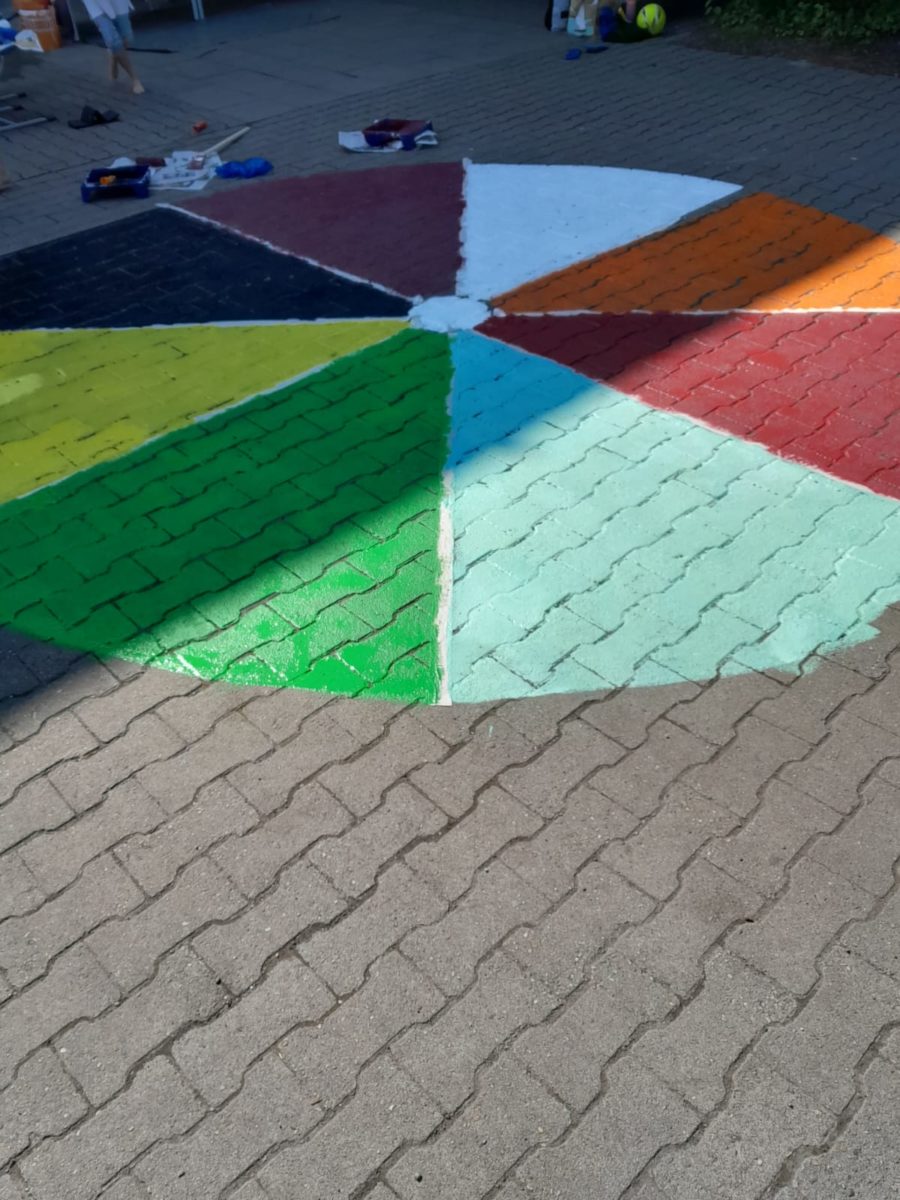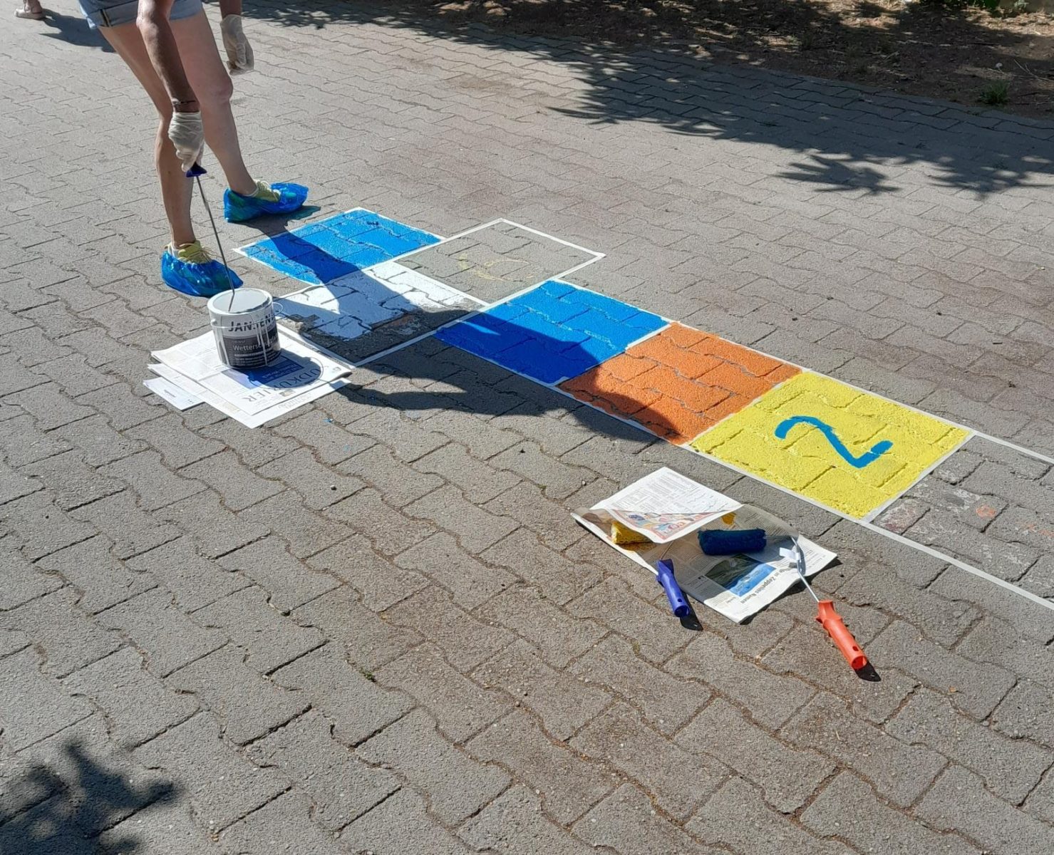 Fleißige Helferinnen und Helfer haben am Samstag, den 24.Juni mit viel Sonnenschein und hoffentlich guter Laune unseren Schulhof verschönert. Die Kinder freuen sich sehr darüber und spielen schon wieder begeistert auf den bemalten Flächen – herzlichen Dank für das Engagement an alle Beteiligten!!